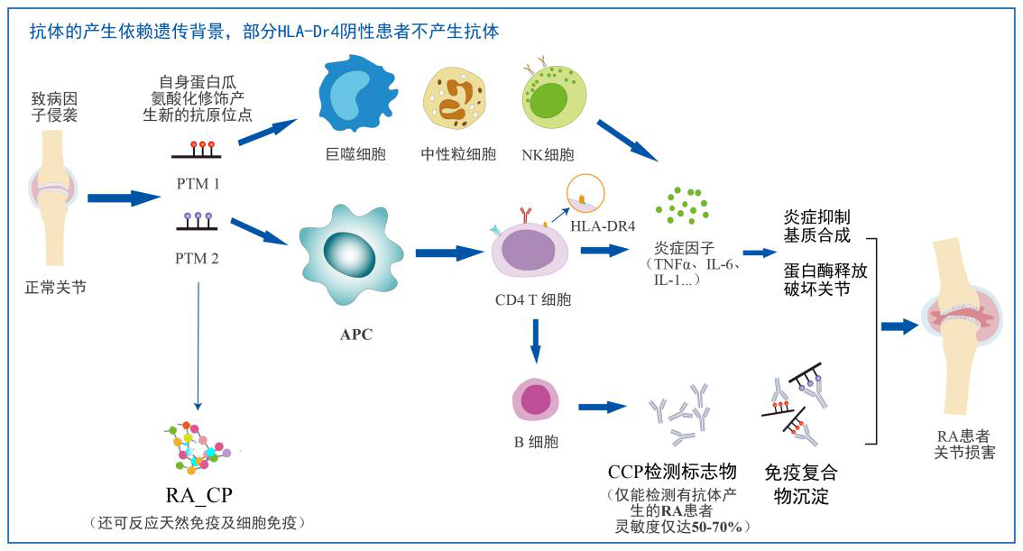 緊接著,又有抗瓜氨酸化蛋白抗體(ACPA)、抗角蛋白抗體(AKA)、抗核周因子抗體(APF)等RA早期血清學(xué)標(biāo)志物被發(fā)現(xiàn),他們均對(duì)早期RA具有診斷意義。