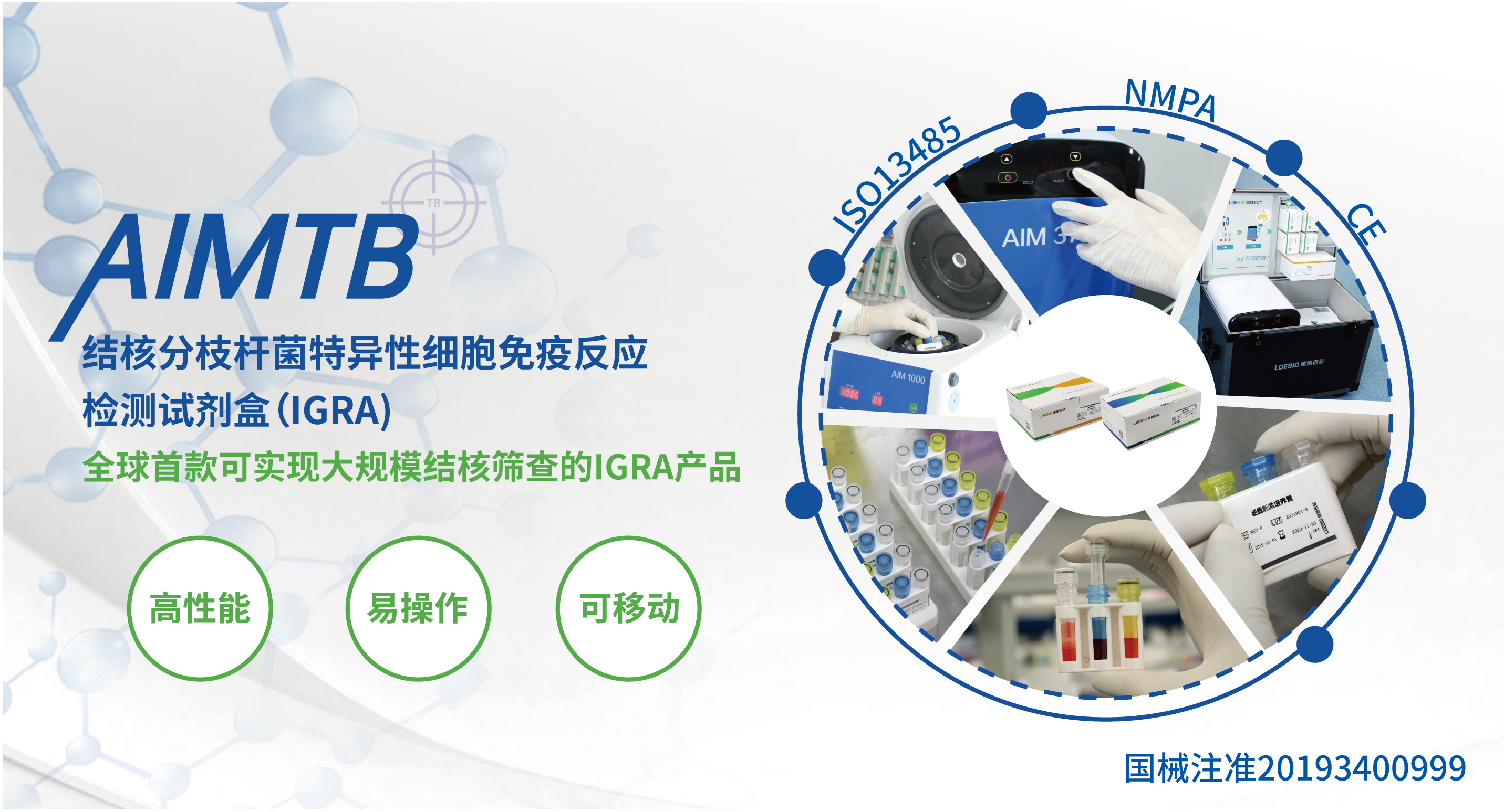 AIMTB能夠在采血量?jī)H1.8ml的情況下實(shí)現(xiàn)立即檢測(cè)或刺激后儲(chǔ)存集中送檢,檢測(cè)性能與國(guó)際主流產(chǎn)品相比,一致性超過(guò)95%,而靈敏度更高,有效證明了產(chǎn)品的優(yōu)越性。