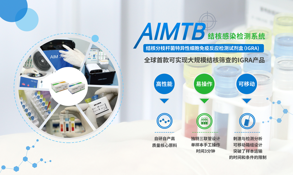 基于全免疫體外診斷核心技術平臺,雷德倍爾創(chuàng)新研發(fā)的AIMTB結(jié)核感染檢測系統(tǒng)已經(jīng)于2019年獲得國家藥監(jiān)局注冊批準上市。AIMTB基于IGRA技術,實驗使用的結(jié)核分枝桿菌基因中含有特異性的RD1區(qū)域的E6和C10兩個強免疫原性抗原,檢測結(jié)果具有相當高的敏感性和特異性。
