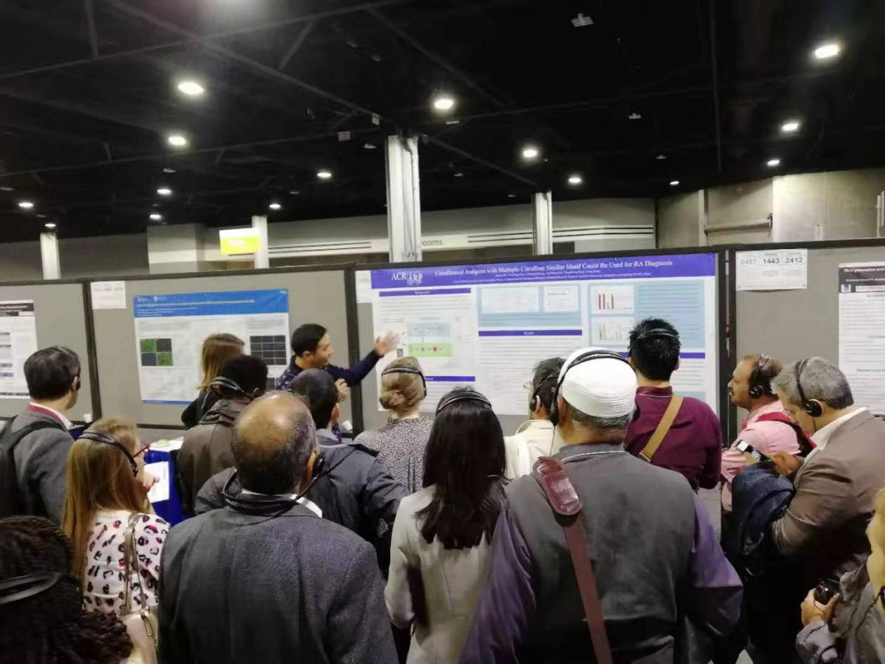 美國(guó)風(fēng)濕病學(xué)會(huì)(ACR)是一個(gè)致力于改善風(fēng)濕病患者的護(hù)理和促進(jìn)風(fēng)濕病??瓢l(fā)展的專業(yè)會(huì)員組織。ACR成立于1934年,是一個(gè)非營(yíng)利性、全球醫(yī)學(xué)協(xié)會(huì),為全球超過(guò)9600名醫(yī)生、衛(wèi)生專業(yè)人員和科學(xué)家服務(wù)。ACR通過(guò)提供有意義的教育、研究、宣傳和實(shí)踐支持來(lái)促進(jìn)其成員發(fā)展。我公司楊博士攜RA_CP(類風(fēng)濕性關(guān)節(jié)炎瓜氨酸化蛋白檢測(cè)試劑盒)首亮此次會(huì)議。