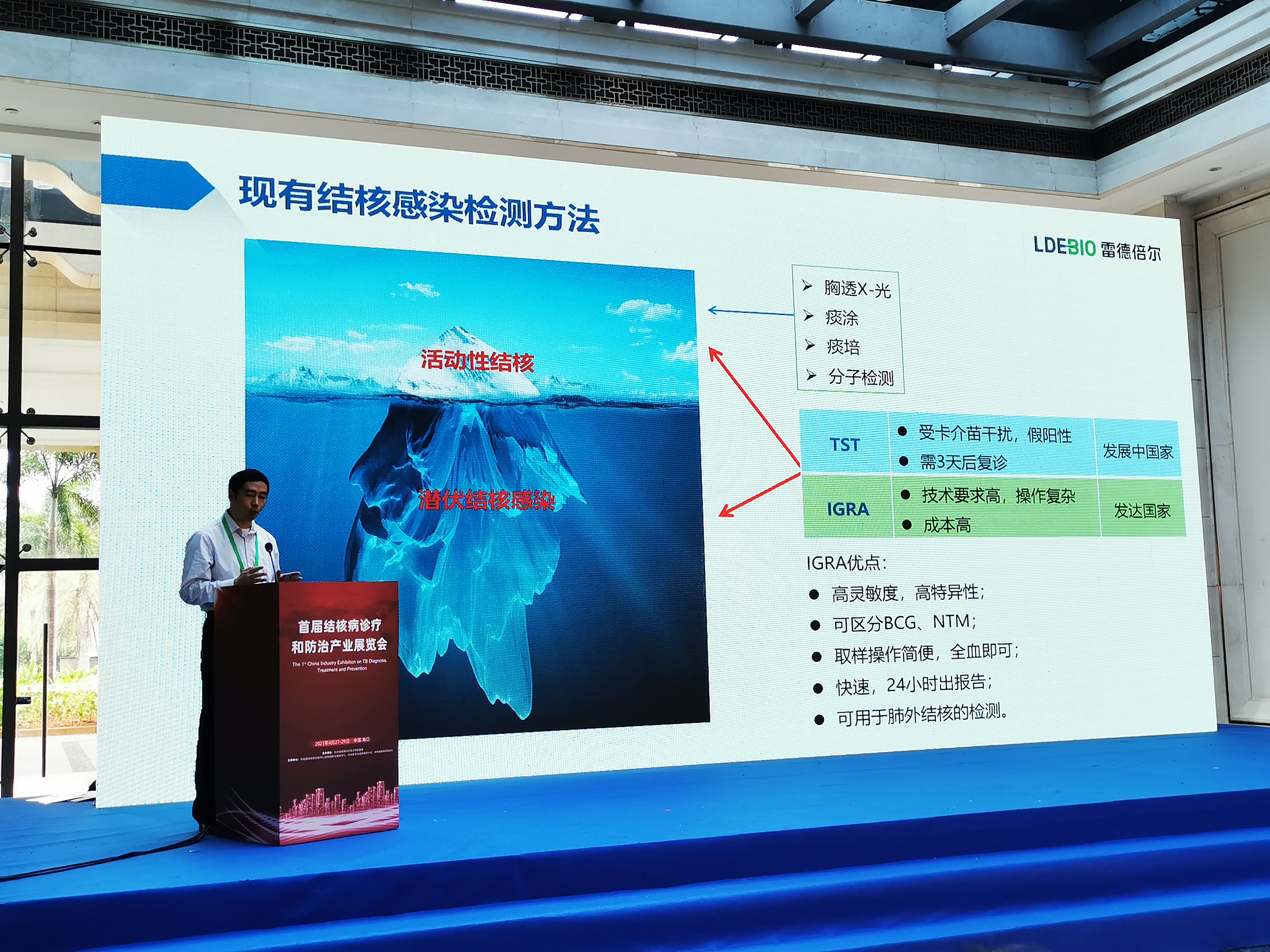 會(huì)中,我司還參與本次大會(huì)的企業(yè)論壇演講,研發(fā)副總楊翔博士分享適合高負(fù)擔(dān)國(guó)家結(jié)核感染檢測(cè)的IGRA產(chǎn)品報(bào)告。他表示,根據(jù)2020年WHO全球結(jié)核病報(bào)告,2019年,全球約1000萬人感染結(jié)核病。結(jié)核死亡患者約141萬。而中國(guó)新發(fā)患者數(shù)約83.3萬,居全球第三位。因此,預(yù)防控制結(jié)核感染依舊刻不容緩。但由于傳統(tǒng)的結(jié)核檢測(cè)方法操作復(fù)雜,假陽性率高,不利于深入基層篩查。市場(chǎng)迫切需要一款成本可控,結(jié)果準(zhǔn)確,可以基層普及的檢測(cè)方法。